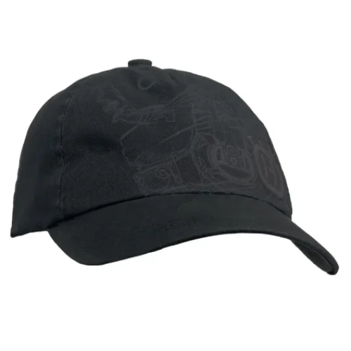 En fin, svart caps med et trykk av vår pionersag. Bare juster båndet på baksiden, og capsen passer perfekt på hodet ditt.