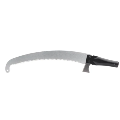 Buet sagblad med krok i forkant, samt såkalt støtkniv for å skjære barken slik at den ikke flises opp.