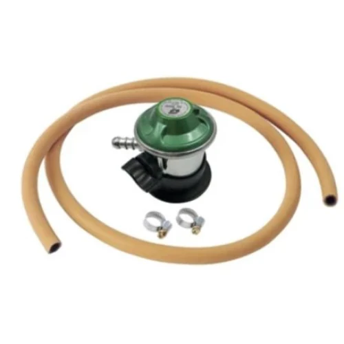 Gassregulatorsett Propano inneholder gassregulator, slange og to slangeklemmer.