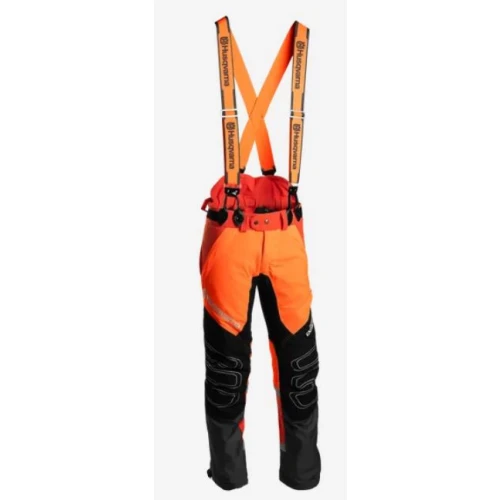 Den har justerbar midje, Husqvarna Tech-Knee, formsydde knær og ventilasjonsåpninger.