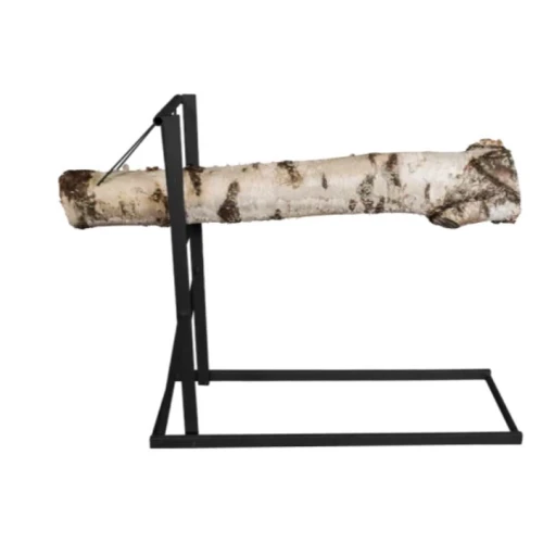 Hendig stativ som sørger for enklere kapping av vedstokken.